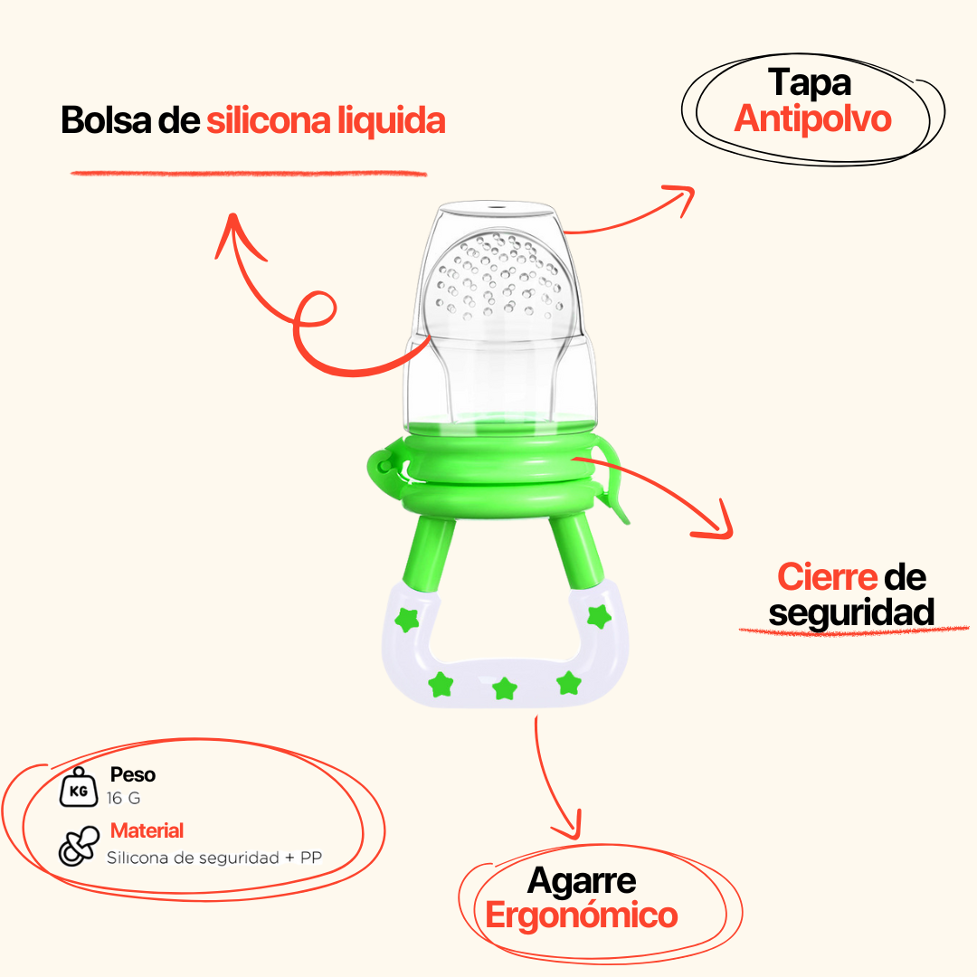 El nubbi tiene poros tan pequeños que ningún trozo puede pasar. Tu bebé chupa, explora y disfruta. Tú respiras.